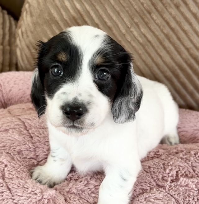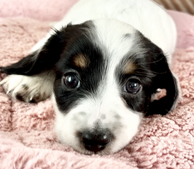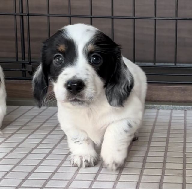 コメント | 9/29 健康診断実施 異常無し 当犬舎子犬は、 人間、成犬(当犬舎の)と 沢山触れ合いながら、して良いこと、悪いことなど 犬社会勉強しながら成長していきます。 社会化期どのような環境で過ごすかが 非常に大事です。 パイボールドは成長過程で柄変化する個体も有ります 当犬舎子犬はどの子も、 ご見学頂きましたお客様から感想ですが、 「実物の方が可愛い!写真写り悪い」など褒めて頂きます 血統書はコピーのみをお渡しになります!! 理由 託しました子犬が繁殖に使用されるのを避ける為 転売防止の為。 ️ MIXではございませんので、 血統書は発行致します。 血統書の子犬マイクロチップ番号と子犬に挿入済マイクロチップ番号は同じです。 【マイクロチップリーダーで番号読み取れます】 お渡し致しましたコピーの血統書が、 ご購入された子犬の血統書で間違い無い事が、どなたでも、確認とれます。 一般のご家庭で過ごす分にはコピーで支障はございません。【繁殖の際に原本が必要】 当犬舎は子犬の生まれた日からお引き渡し日までの成長の写真動画をお渡ししております。 当犬舎出身の子達の親族会等あり、我が子の親戚犬とも繋がることが可能です。【希望者のみ】 健康な子犬をご紹介出来ます様に、両親犬にPRA、CL、骨異形成症の遺伝病検査済です。 PRA【進行性網膜症】 CL、【神経セロイドリポフスチン】 骨異形成症 等の遺伝病を発症する事はありませんので、 ご安心下さい 詳しくは、ブリーダープロフィール欄に記載しておりますのでご覧に頂けましたら、幸いです。 胴長短足のダックスは腰膝に負担がかかりやすい体型です。ヘルニア、パテラのリスク軽減する為、骨格、筋肉がしっかりした個体になるように心掛けてブリーディングしております。 お顔や身体の柄は、このまま変わらない子や、変わる子も居ます。 サイズもあくまで予想となります。 【その子の生まれ持った体格や、 成長する段階の食べ物、運動量など、生活環境により変わってきます】 ミニチュアサイズの子、カニンヘンサイズに近いの子、ミニチュアサイズオーバーに成長した子と旅立ちました先でそれぞれです。 柄を重視なさる方は、ある程度、柄の予想がつくまで、 サイズを非常に気になさる方も成長の様子を見られる事をお勧め致します。 お引き渡し前に、初回ワクチン、検便、簡易健康診断をしてお渡しとなります。 【獣医師の健康診断表をお渡し】 初回ワクチン代は別途、回数分必要です。 パパ犬、ママ犬、兄弟犬達、人間と沢山触れ合い、一番大切な社会化期を過ごして成長します。 子犬、親犬共に、管理が行き届く環境(一般家庭に近い)で生活しております。 写真は随時更新致します ママは5キロ ブラックタンパイボールド ビビリな面もありますが、甘えん坊。 パパは、6キロ ブラックタン 初めましての方に人見知りしますが、 慣れたらグイグイ甘えてきます。 もっと沢山の写真や動画などご覧になりたい方はお気軽にお問い合わせください。 犬舎にご来舎にての見学の ご希望のお客様は、予めご見学希望日を複数日、お知らせ下さい。調整させて頂きます。 その際ご来舎される人数、交通手段を添えてお問い合わせ頂きますと助かります。 WEB見学【LINEビデオ通話使用】も、お申し付けください。 実際にご来舎を迷われる場合は、先にWEB見学され、気に入って頂けましたら、実際にご来舎頂くと言う事も可能です。 勿論WEB見学は無し最初から直接ご来舎見学でも大丈夫です。 子犬の予約【子犬の確保】権利は、お問い合わせ、ご見学の順番では無く、ご予約金をお支払い頂きました方が、優先となります為、メール、掲示板等、やり取りの最中、ご見学日を具体的に取り決め後でも、売約済みになる可能性もございます。 ご見学日の前日までは、売約済みになってしまう可能性もある事をご了承ください。【ご見学日前日に当犬舎から明日ご見学よろしくお願い申し上げます。との連絡致します。それ以降ご見学までは、優先的にご案内になります】 ご見学に際してお願い事です 同じ子犬に、ご見学がとても集中してしまう事がございます。 同日の同一子犬のご見学は、子犬のストレス、疲労を考慮しまして受付しておりません。 同日の見学希望が重なる場合は、後のお客様にはご見学日変更をお願いする流れになります。 実際触れ合い、父母犬をご覧になりご決断は重要ですので、ご見学は大歓迎です。 殆どのお客様が真剣にご検討でご来舎して頂いてますが、ご見学意図が、異なるお客様もいらっしゃいます。 当犬舎の子犬でなくても別に良い方。 横須賀に用事があったついで 動物触れ合いコーナー感覚。 希望犬種が定まってなく ダックス以外もご検討中の方。 子犬を迎える事をご家族全員が 希望されてない方。 今は子犬お迎えできる時期、環境でない方。 上記の様に、ご見学の意図から外れてます方を優先してしまいますと、真剣にご検討中のお客様のご案内が出来ません。