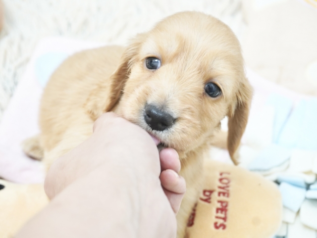 色々とご無理を言っても親切に対応して頂きました。ドッグショーなどで忙しいなかでも、返事をくださり大変ありがたく思います。やっと仔犬が家族の一員なりとても嬉しく思います。ダックスを購入されたい方おすすめしたいです。(兵庫県 男性)