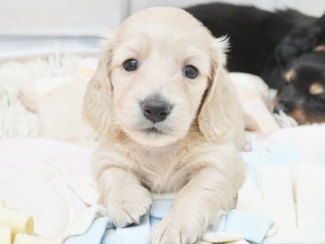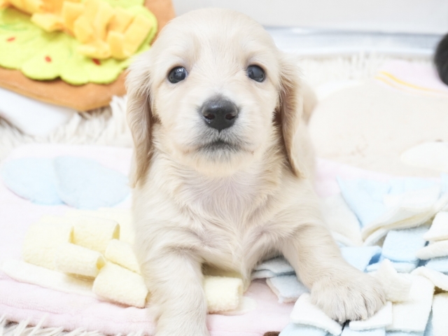 コメント | ダックスフンド専門ショーブリーダーの元で優良血統の子犬が生まれています! ショーラインの子は大人になった時にどなたが見ても綺麗な自慢の子に育ってくれますよ(^-^) 各種クレジットカード利用可。 PRA発症リスクはありません ●千葉県、宮城県、熊本県に協力販売店がありますので、遠方にお住まいの方でも子犬をお迎えいただけます。詳細はお問合せください。 ★同じ兄妹でも子犬の性格はみんな違います。ご家族構成に合った犬の選び方をアドバイスいたします。 ★犬は飼い主さんの育て方ひとつで全く違った犬へと成長していきます。飼い主さんが手に負えない子に育っていかないように、犬との関係性の築き方など詳しくご説明いたします。 ショーマナーなど訓練をする私どもが、LINEやメール、お電話などによる家庭犬の飼育相談!アフターケアも万全ですので、飼育初心者の方でも安心してお迎えいただけます。 ・父親:JKCチャンピオン直子!シェイデッドイエロー(ナル) ・母親:ブラックタン(オハギ) ・健康状態良好!今の所欠点はありません。 ・自然に囲まれた環境の良い犬舎で、親・兄妹一緒にスクスク成長中! ・離乳後は、兄妹・犬舎の他の子犬達と一緒に生活します。 遊びを通じて犬同士の付き合い方をしっかりと学びます。 ・丹精込めて育ております。 人間と接する時間が多く、人懐っこい性格に育ちます。 ★★★ブリーディングポリシー★★★ ●当方では、生まれてくる子犬の健全性に配慮して、黒い毛のないクリアなカラーの親犬同士の掛け合わせやレアカラーなどのブリーディングは行っておりません。 ●健康で良い犬の作出には力を注いでいますが、販売だけを目的に、クリアなカラー、極小サイズなどを意識したブリーディングは行っておりません。 ●人間の子供と同じく、生後半年頃までの育ち盛りの子犬は成犬時以上に栄養価が必要です。成長期の子犬は見た目にコロコロとしている事が当たり前ですから、過度にウェイトを少なくするような飼育は行っておりません。 ご希望の方には、最新の写真をお届けいたしますので、ご遠慮なくお知らせください。 もちろんご見学大歓迎です! PayPay取扱店 |