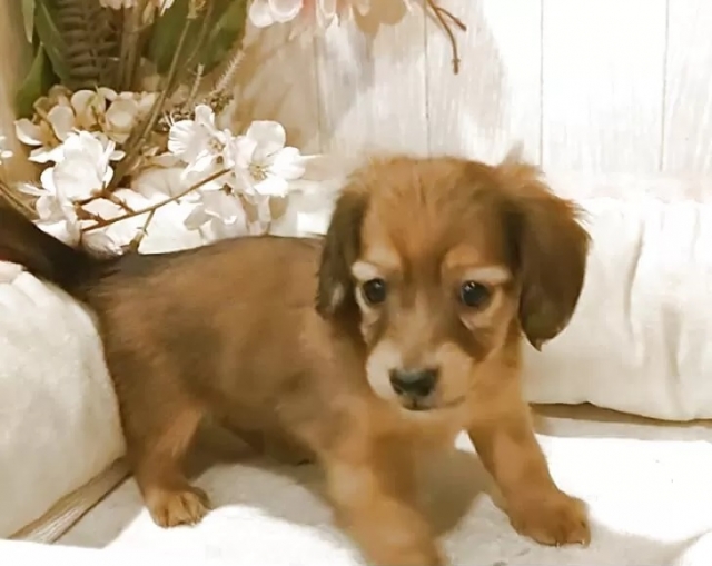 ミニチュア・ダックスフンド(ロング) シェーデッドイエロー ♂(男の子) 愛知県【 ダックスフンド・ブリーダーズ 】